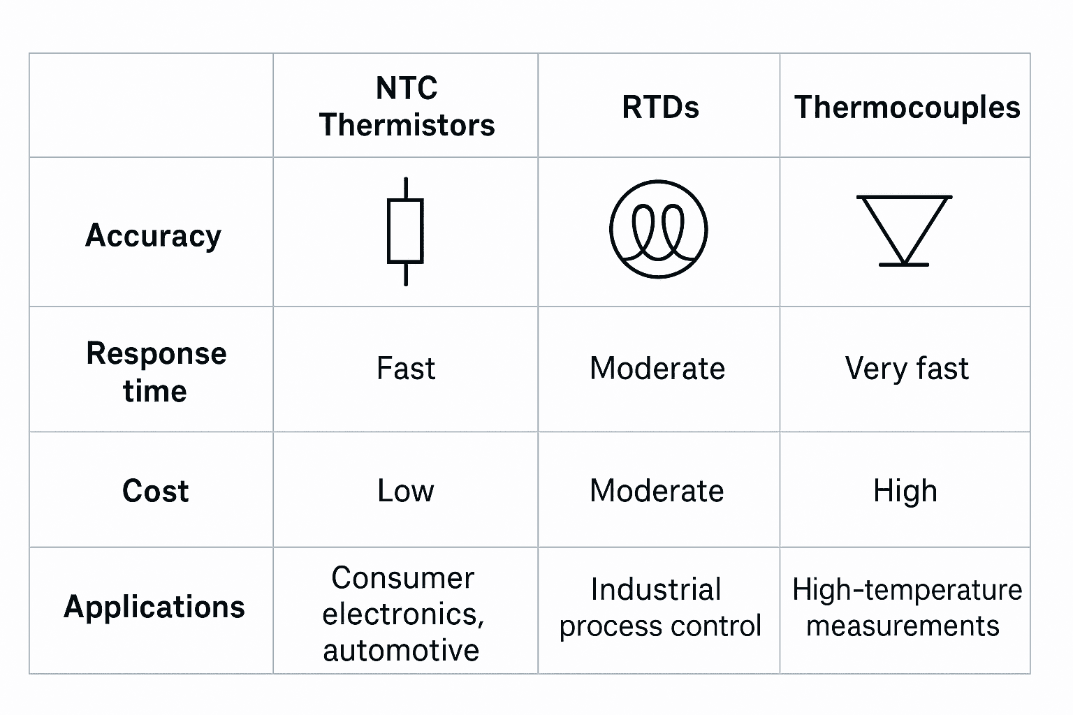 Thermocouple Medium Fast Low High-temperature industrial applications (> 600 °C)