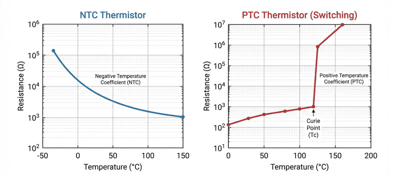 - PTC Thermistors: Primarily for over-current protection and self-regulating switches (not precision measurement).